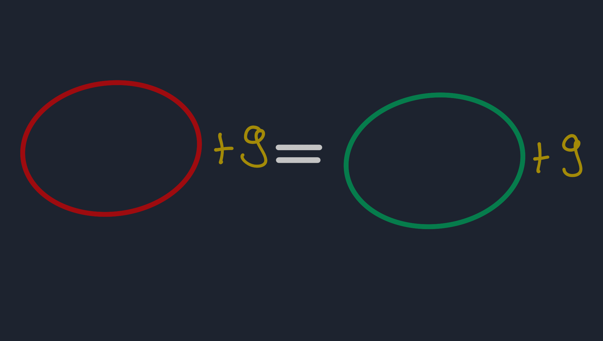 Grundsätzlich kann man sich Gleichungen wie obenstehendes Bild vorstellen. Zwei große Flecken und dazwischen ein Gleichheitszeichen.