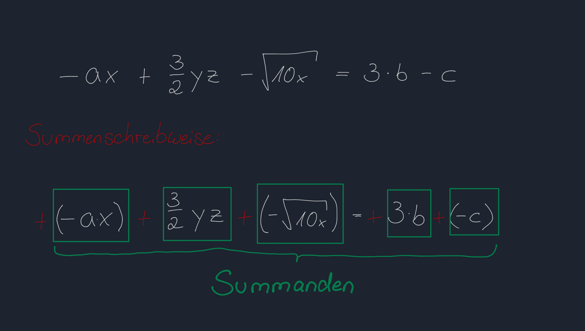 Man kann die Terme einer Gleichung in der Summenschreibweise schreiben. Das heißt: