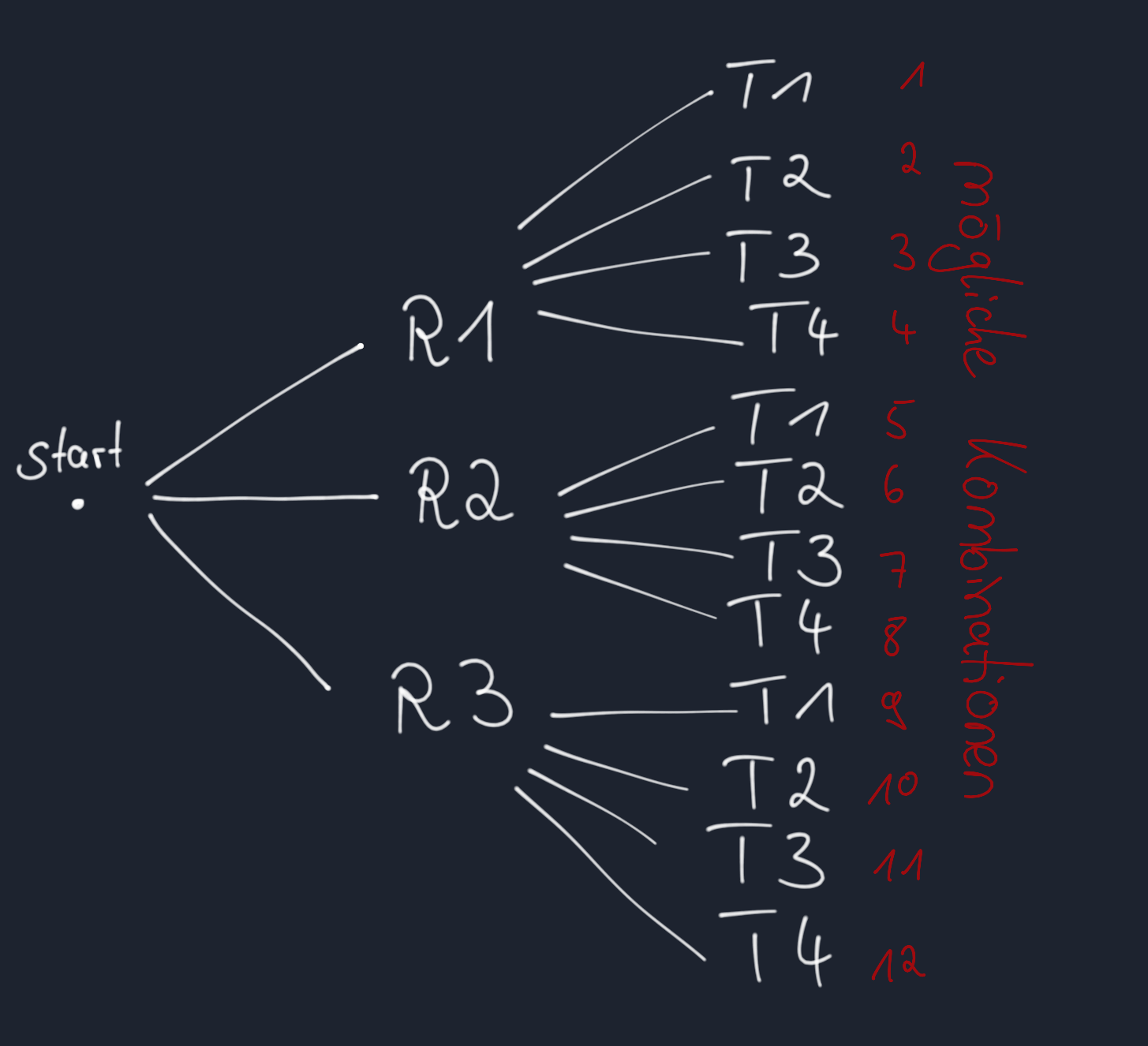 Damit ergeben sich insgesamt 12 Kombinationen.